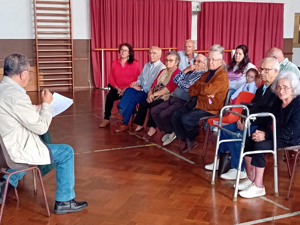 A sessão de sensibilização à comunidade contou com a presença de mais de duas dezenas de pessoas, de várias idades, cumprindo o objetivo de juntar indivíduos de diferentes gerações à volta da discussão e convívio entre si.