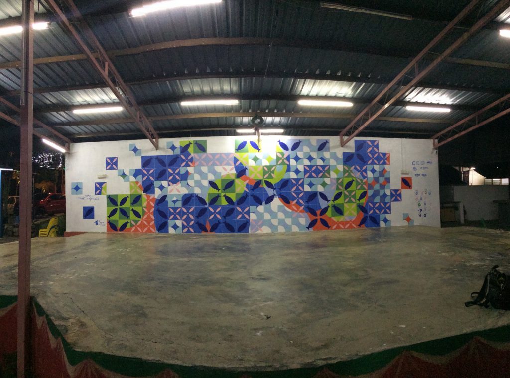 noção quase de uma flor. - as formas arredondadas em certos locais do mural que fazem uma ligação das